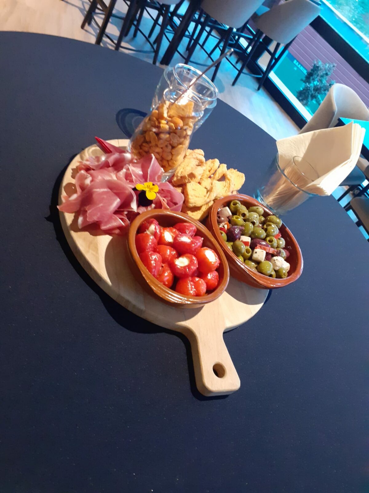 De Borrelplank bestaat uit een gevarieerde selectie hartige hapjes die elkaar perfect aanvullen. Alles wordt vers bereid en zorgvuldig samengesteld, zodat je een uitgebalanceerde plank ontvangt.